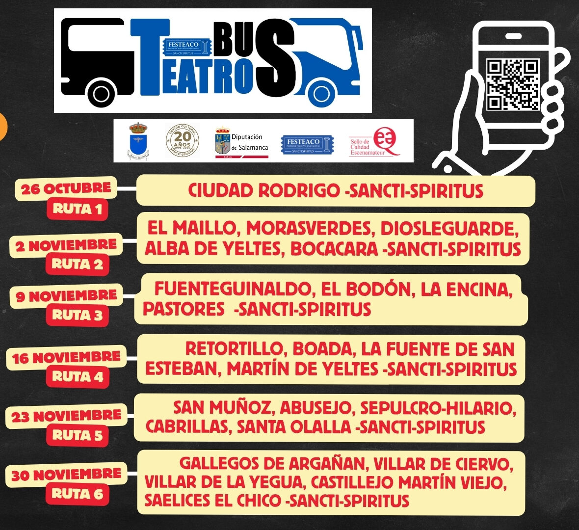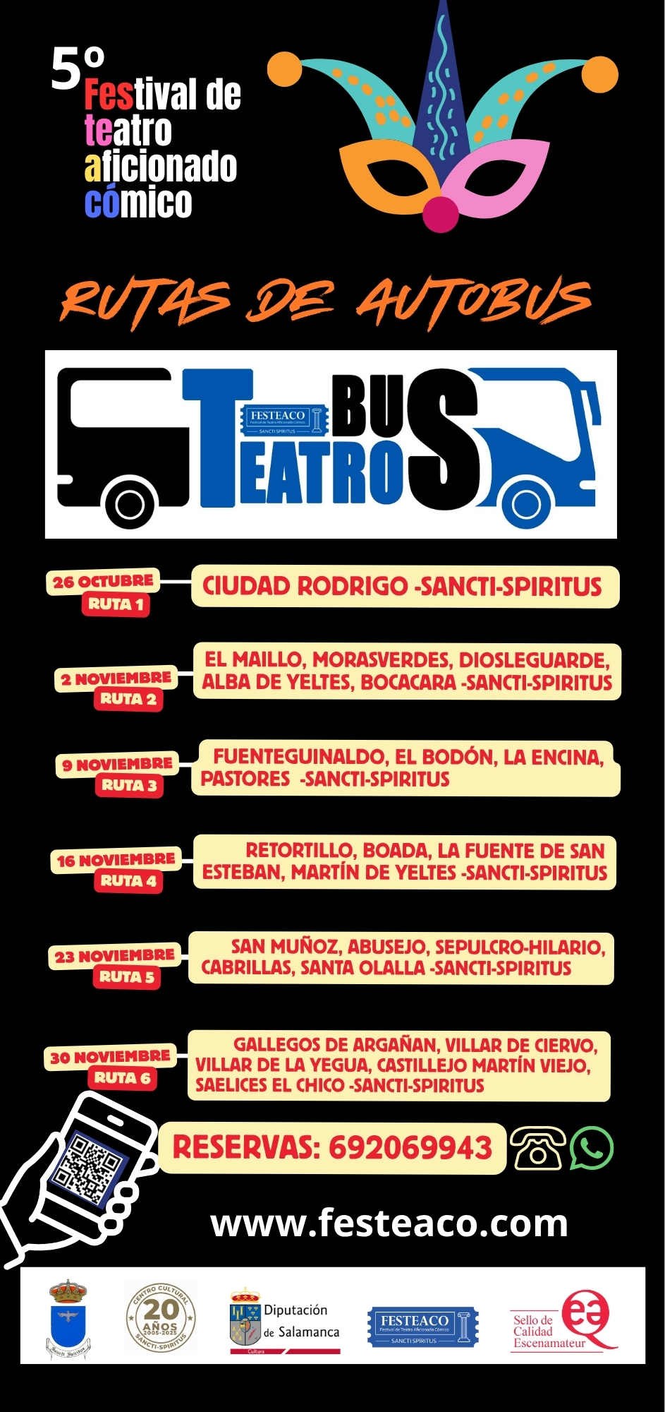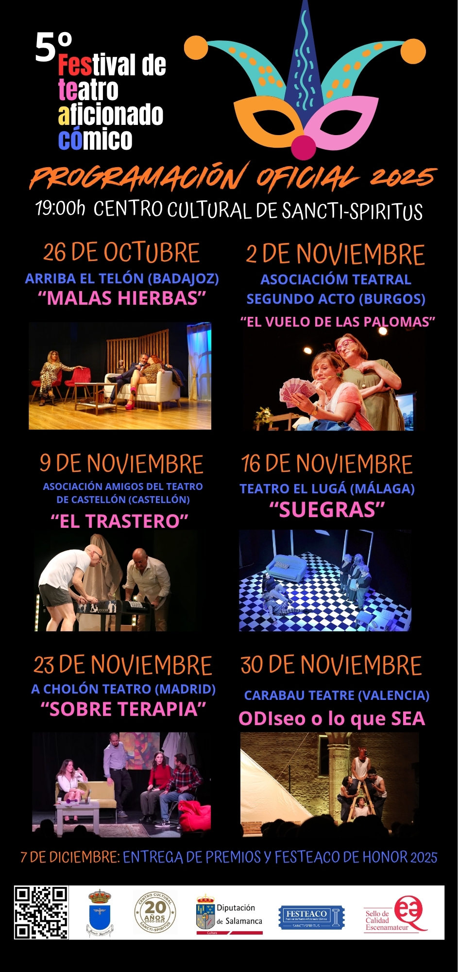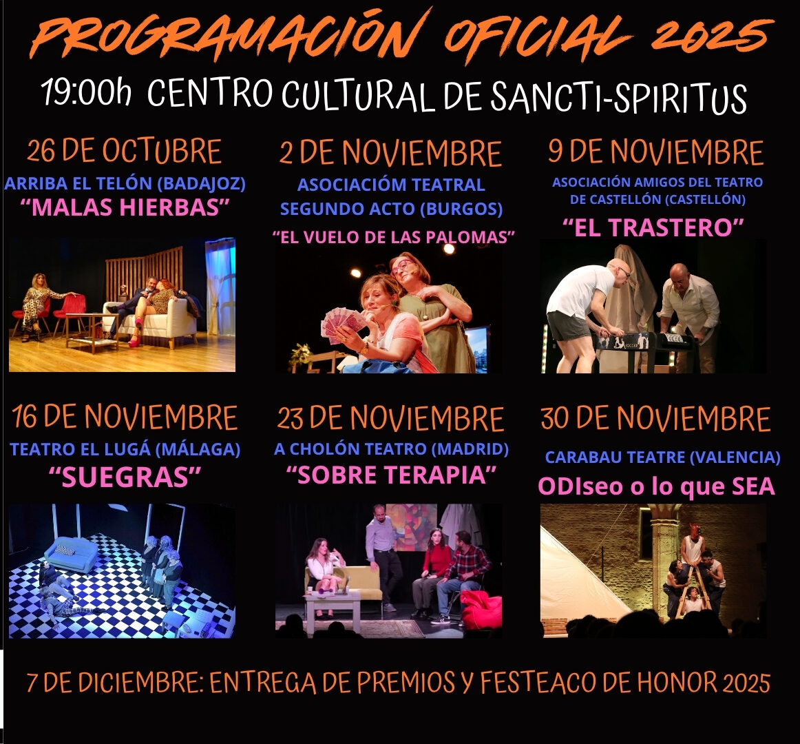 EL QUINTO FESTIVAL DE TEATRO AFICIONADO CÓMICO, se celebrará entre el mes de Octubre y Diciembre de 2025. Este Certamen de carácter internacional está organizado por el Ayuntamiento de SANCTI-SPIRITUS y con la colaboración de la Diputación Provincial de Salamanca.